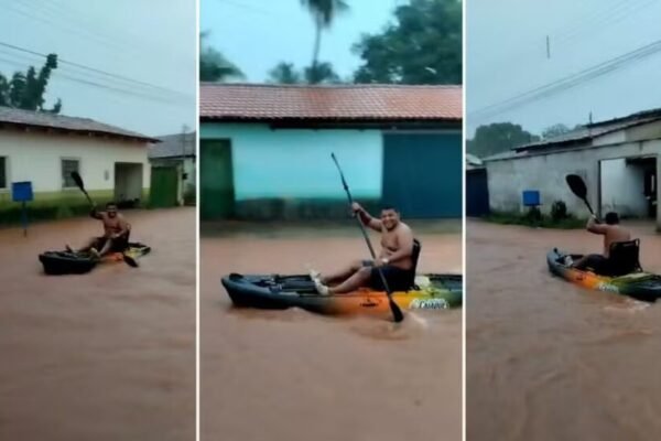 Uma forte precipitação que atingiu Caseara, no oeste do Tocantins, durante o fim de semana transformou a rua Dona Joaninha em um verdadeiro canal. No domingo (4), o servidor público Joabh Morais da Silva foi filmado remando de caiaque pelo local alagado, cena que rapidamente ganhou as redes sociais. No vídeo, outro morador narra a…