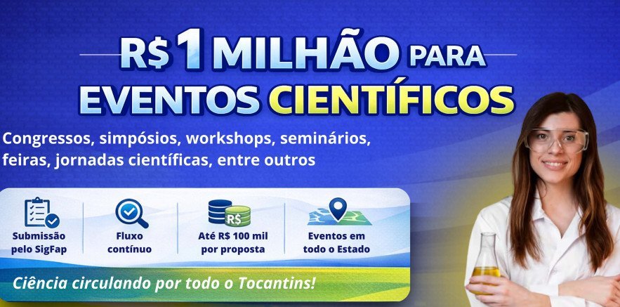 Palmas (TO) – A Fundação de Amparo à Pesquisa do Tocantins (Fapt) abriu o Edital nº 01/2026 destinando R$ 1 milhão ao financiamento de eventos técnico-científicos previstos para ocorrer no estado entre 16 de março e 16 de dezembro de 2026.