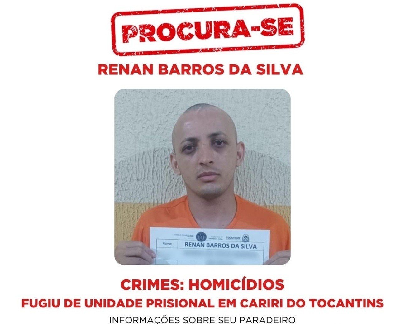Denúncias sobre o paradeiro dos fugitivos podem ser feitas, de forma anônima, pelos telefones de emergência 190 ou 197, ou ainda pelo plantão da Central de Flagrantes de Gurupi, no número (63) 3312-4110.