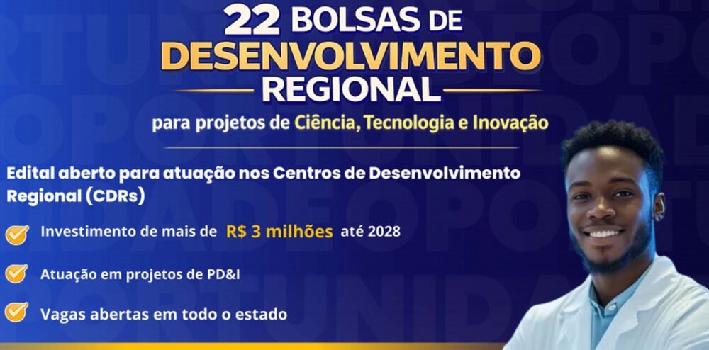 O Governo do Tocantins publicou edital oferecendo 22 bolsas de Desenvolvimento Regional na área de Ciência, Tecnologia e Inovação. A seleção é coordenada pela Fundação de Amparo à Pesquisa do Tocantins (Fapt) e integra as ações da Rede Deser Tocantins.